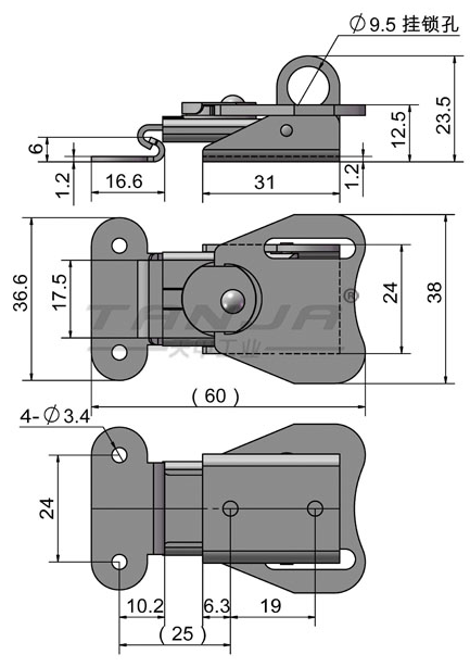 通過偏心結構帶動鎖舌鎖緊,并形成自鎖,防止回彈