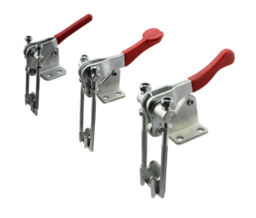 所謂五金直角搭扣,就是一類轉角或垂直式安裝的搭扣、或箱扣。這種五金直角搭扣與我們平時重型箱扣不同,它是垂直式安裝的,什么意思呢,就是扣體的安裝面與扣座的安裝面是垂直式的,下面圖中這款就是五金直角搭扣,當然不同的使用環境下有不同的叫法,根據客戶實際的情況而定,我們這里就暫且稱為五金直角搭扣。