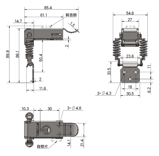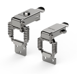 五金直角搭扣與我們平常使用的工具箱搭扣的材質是一樣的,可以采用鐵材質,也可以不銹鋼材質,上面圖中這款采用的是鐵材質的,表面采用鍍鋅處理,在生產工藝方面都是采用沖壓工藝,五金直角搭扣如果使用在室內可以采用鐵材質的,因為室內干燥環境下鐵材質表面鍍鋅可以起到很好的防腐、防銹作用。像這種彈性減震搭扣就是采用鐵材質的。