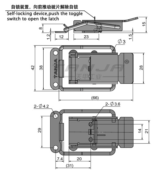 搭扣獨特的自鎖機構設計,防止搭扣在使用過程中彈開,使用方便安全