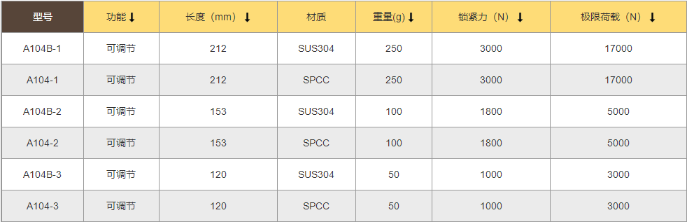 特點:螺桿可調節從而改變安裝距和鎖緊力