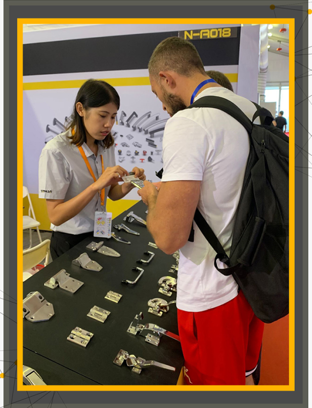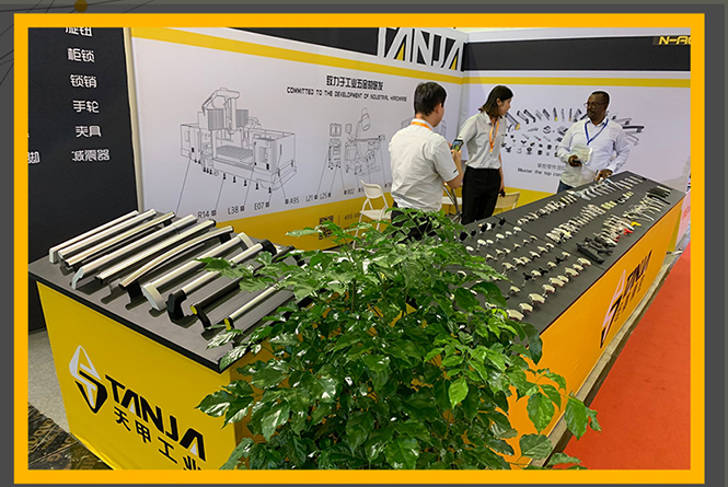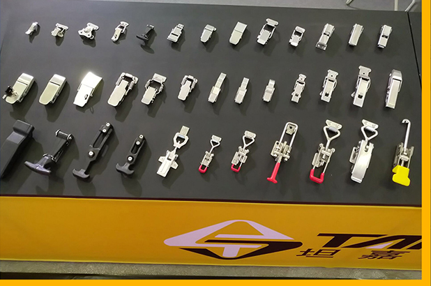 此次坦嘉攜帶多款自主研發的專利產品:不銹鋼搭扣、鉸鏈、門配、旋鈕、磁力夾具、把手及各種操作件等產品盛裝出席。