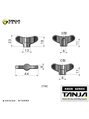 這款旋鈕無需工具,用手即可輕松擰緊和擰松的機翼型旋鈕,也可稱為蝴蝶螺母。