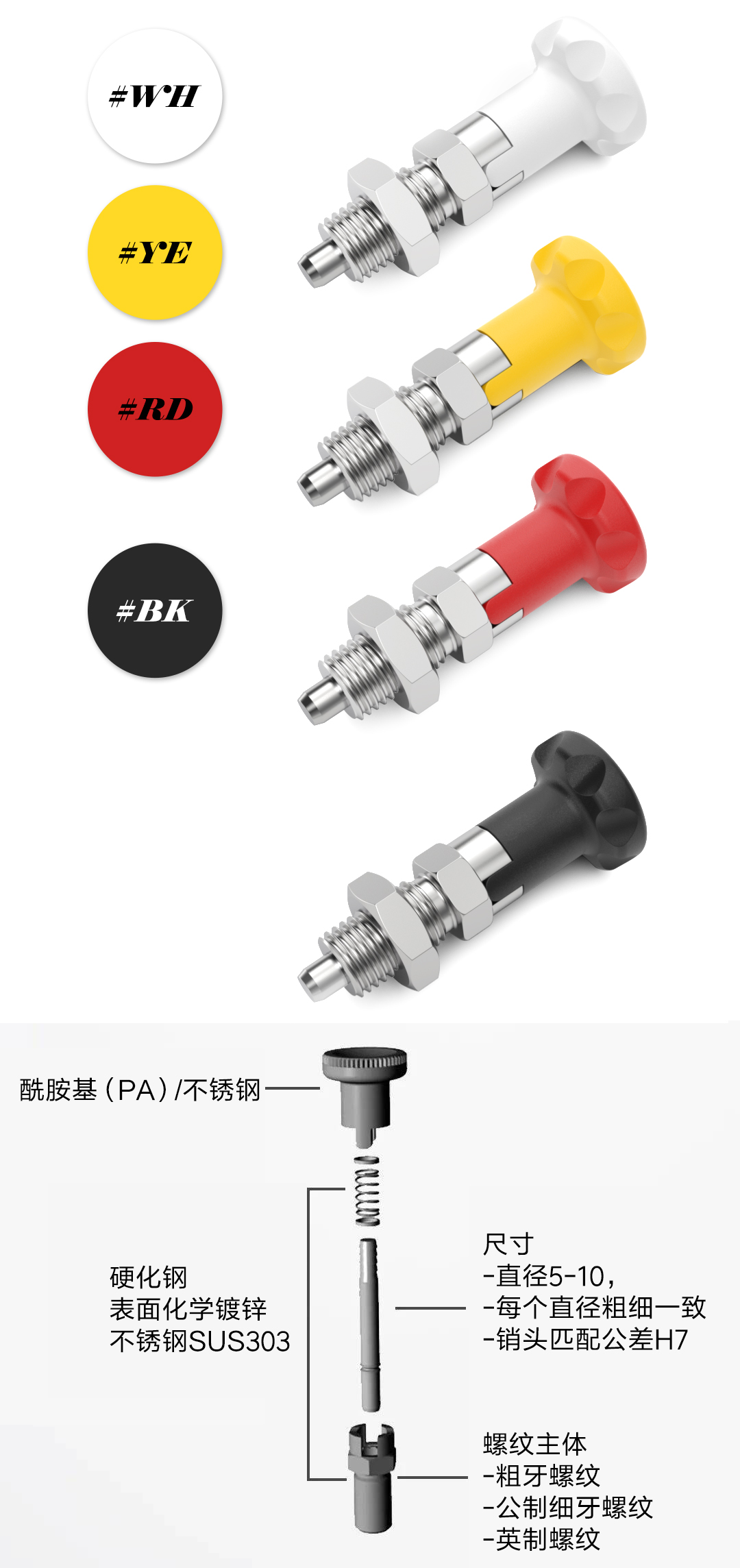 分度銷、旋鈕柱塞