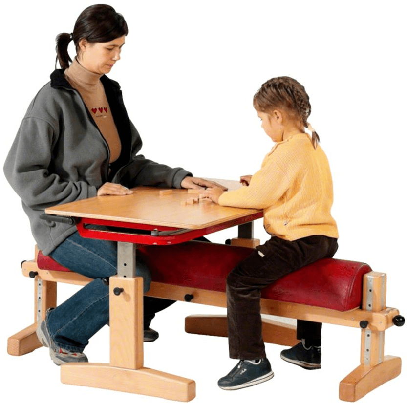 圖中桌椅就用分度銷來調節合適的高度,長度。