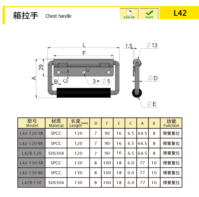 | L42-120-BK | SPCC | 158.91 | 120 | 黑色 | 64.5 | 8 | 6.5 | 7 | 16 | 90 | 箱拉手 | 下載 | ||||