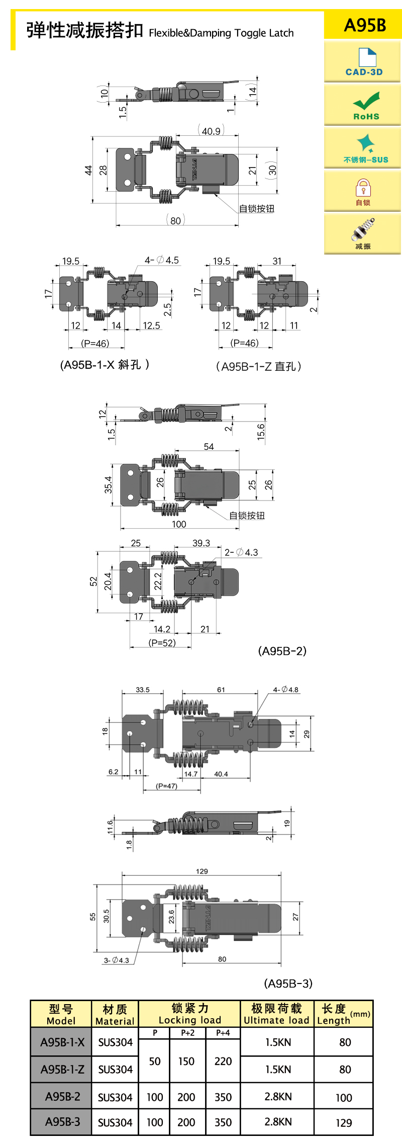 搭扣獨特的自鎖機構設計,防止搭扣在使用過程中彈開,使用方便安全
