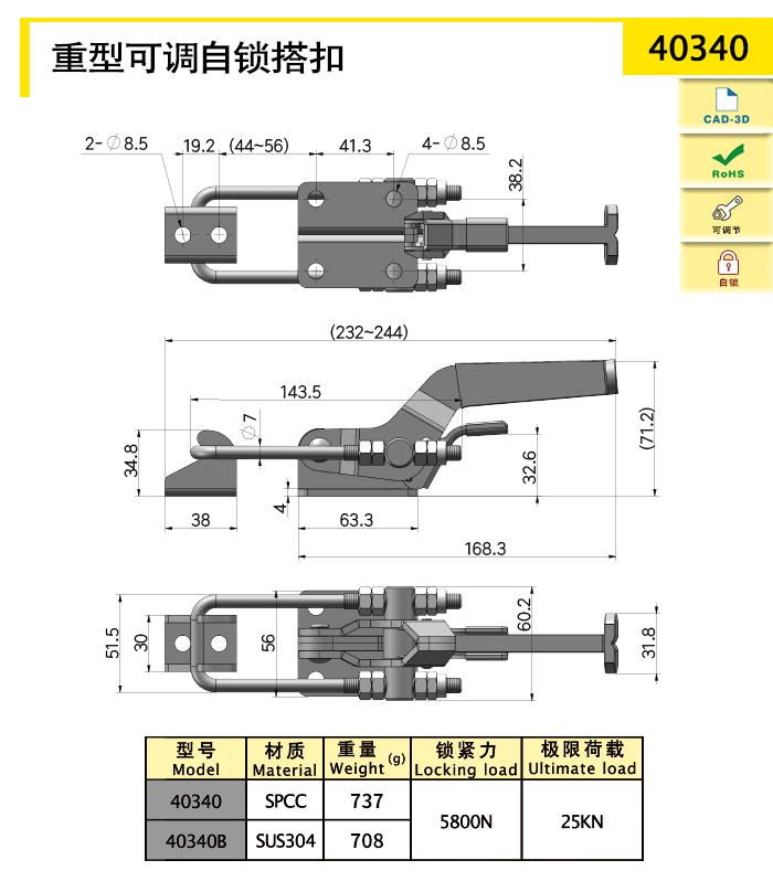帶自鎖機構,按壓閉合搭扣可形成自鎖,防止意外彈開