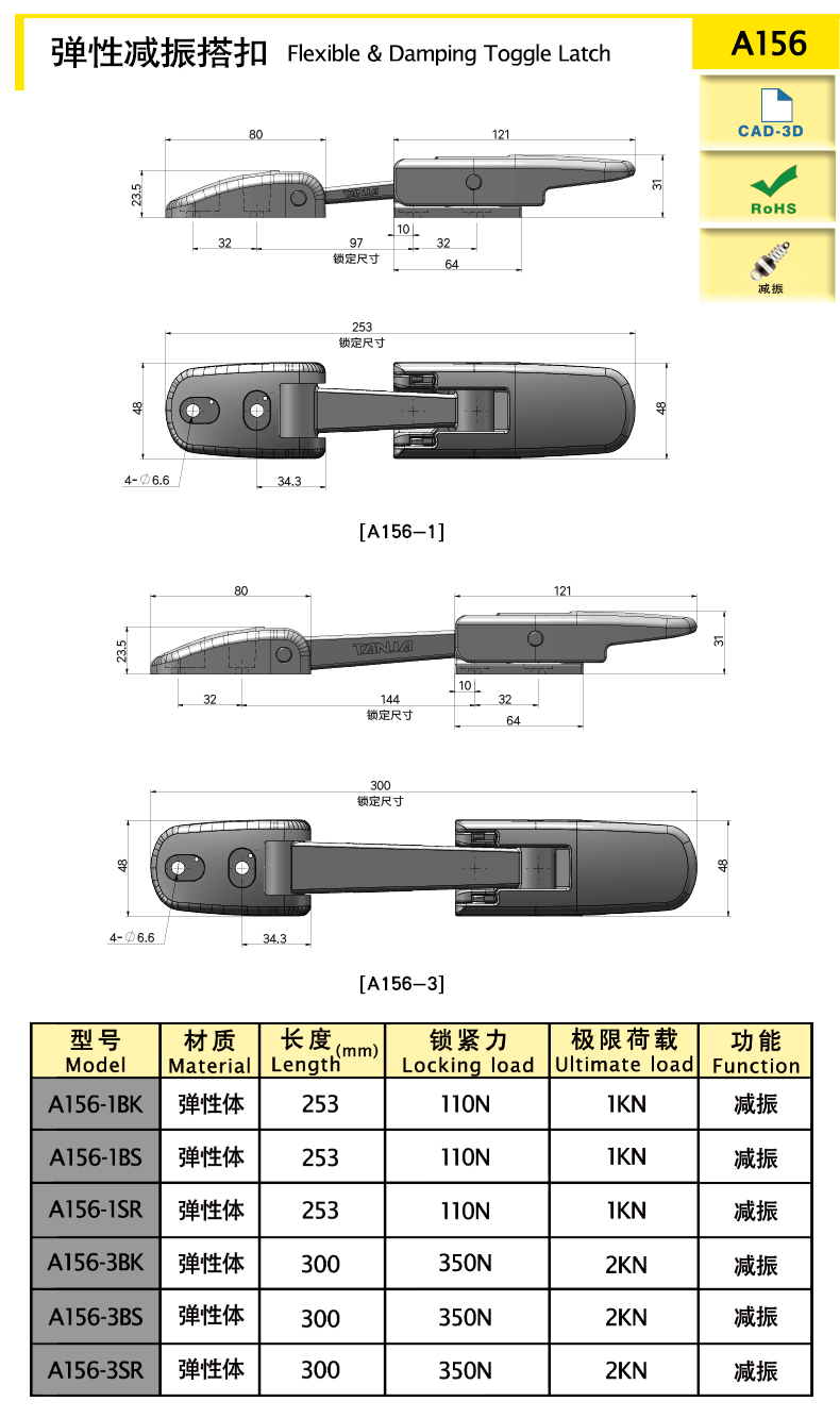 | A156-1BK | 253 | 彈性體 | 165.41 | 110 | 1000 | 減振 | 下載 | ||||