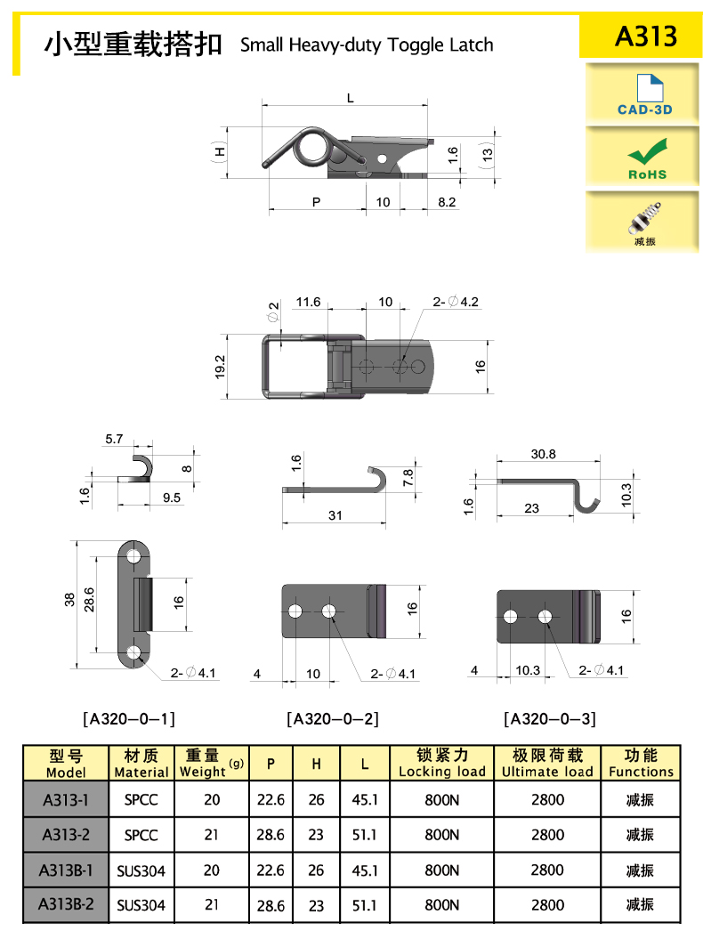 | A313-2 | 51.1 | SPCC | 21.01 | 800 | 2800 | 減振 | 下載 | ||||