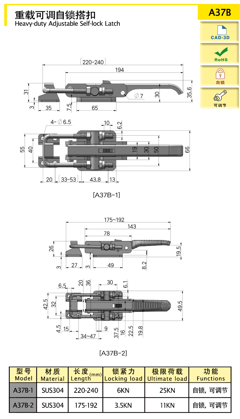 自鎖裝置可實現(xiàn)自鎖功能,具有可靠的安全性,搭扣不會因振動松脫