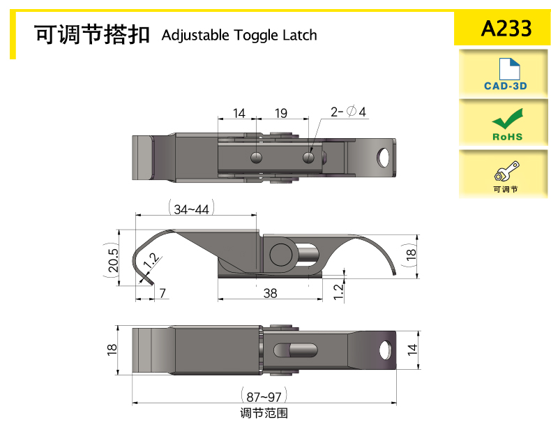具有可調節功能,螺桿可調節從而改變安裝距和鎖緊力