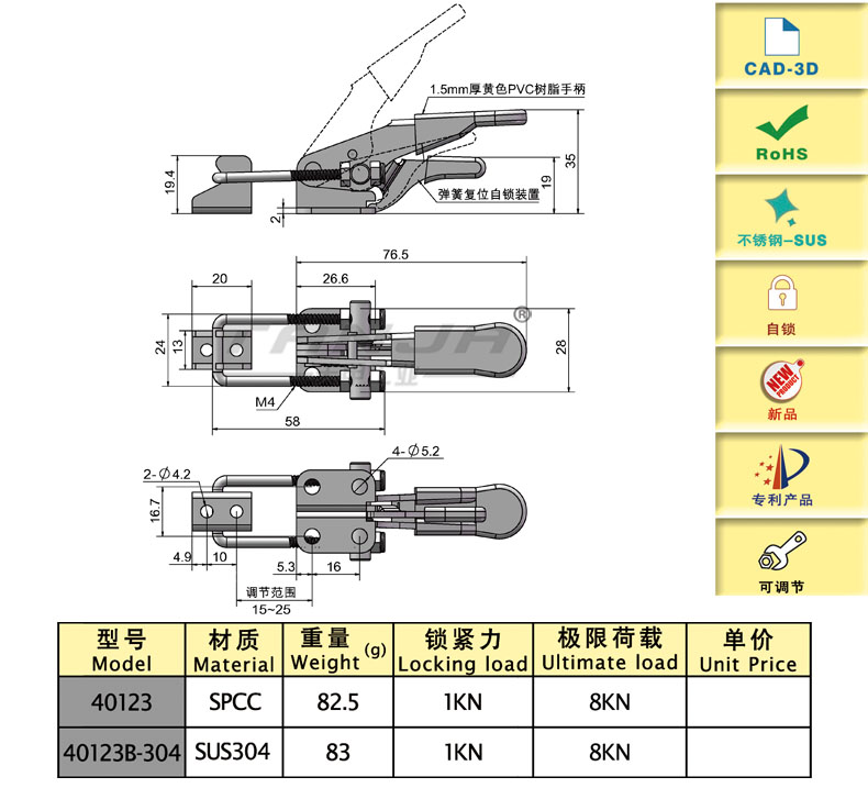U型螺桿可調節安裝距離和緊固松緊度