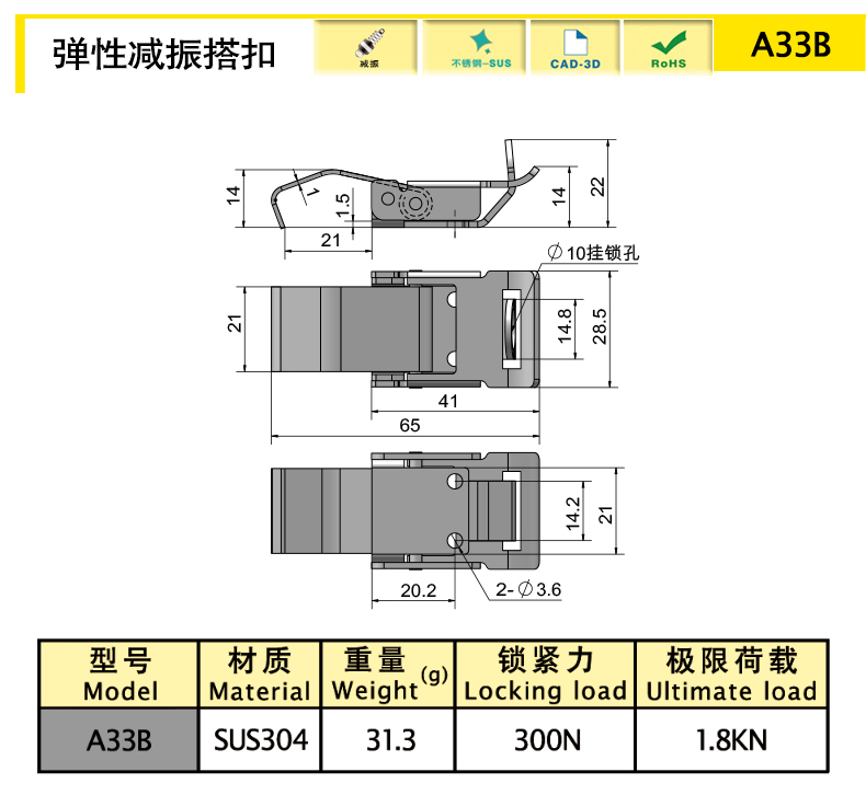 自身的彈性鋼片使搭扣具有預壓減振功能