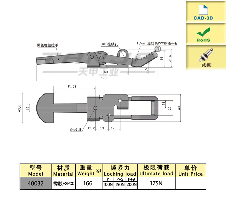 質優橡膠體扣身具有減振功能,可保持對連接體的彈性預壓