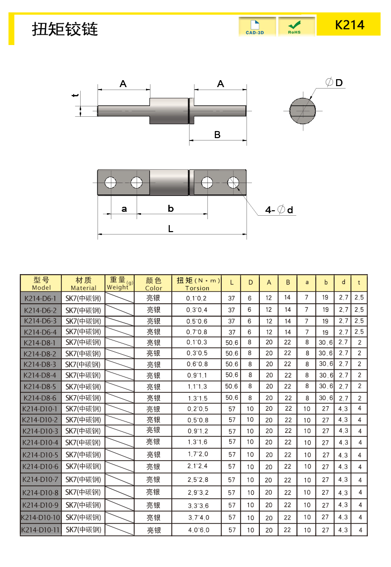 K214-D8-3 | 碳鋼 | 50.6 | 銀白 | 100 | 固定扭矩 | 下載 |