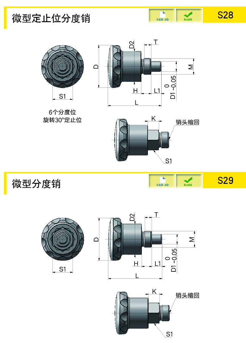 BK:把手PA,黑色,亞光飾面;銷頭SUS303帶定止位的分度銷,提起把手旋轉30°可定位