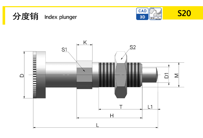 | 型號 | 材質 ![]() | D1 ![]() | L1 ![]() | M ![]() | T ![]() | D ![]() | 長度L ![]() | K ![]() | 高度H ![]() | S1 | 最大載荷(N) ![]() | 重量(g) | 3D圖紙 | 選購 | |||