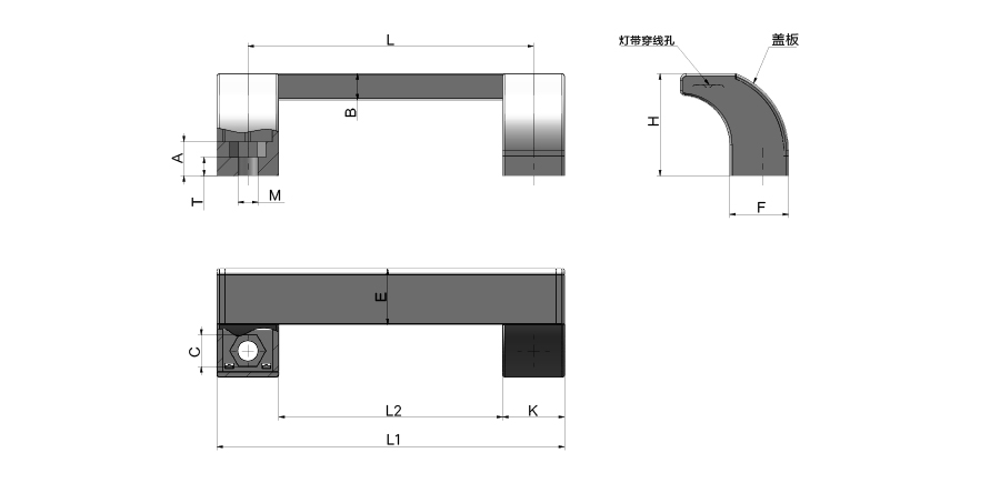 | 型號 | 材質 | 管身 ![]() | 支腳 ![]() | 蓋板 ![]() | 重量(g) | 長度L ![]() | L1 ![]() | L2 ![]() | H ![]() | F ![]() | E ![]() | M ![]() | T ![]() | C | K ![]() | A ![]() | B ![]() |