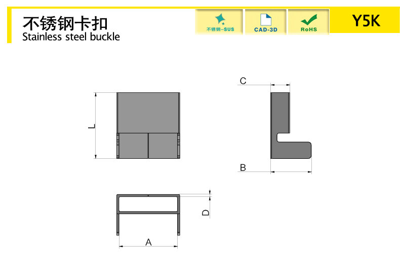 | Y563B | SUS304 | 銀白 | 1 | 18.2 | 10.7 | 5.6 | 14 | 12.5 | 卡扣 | 0.7 | 下載 | ||||
