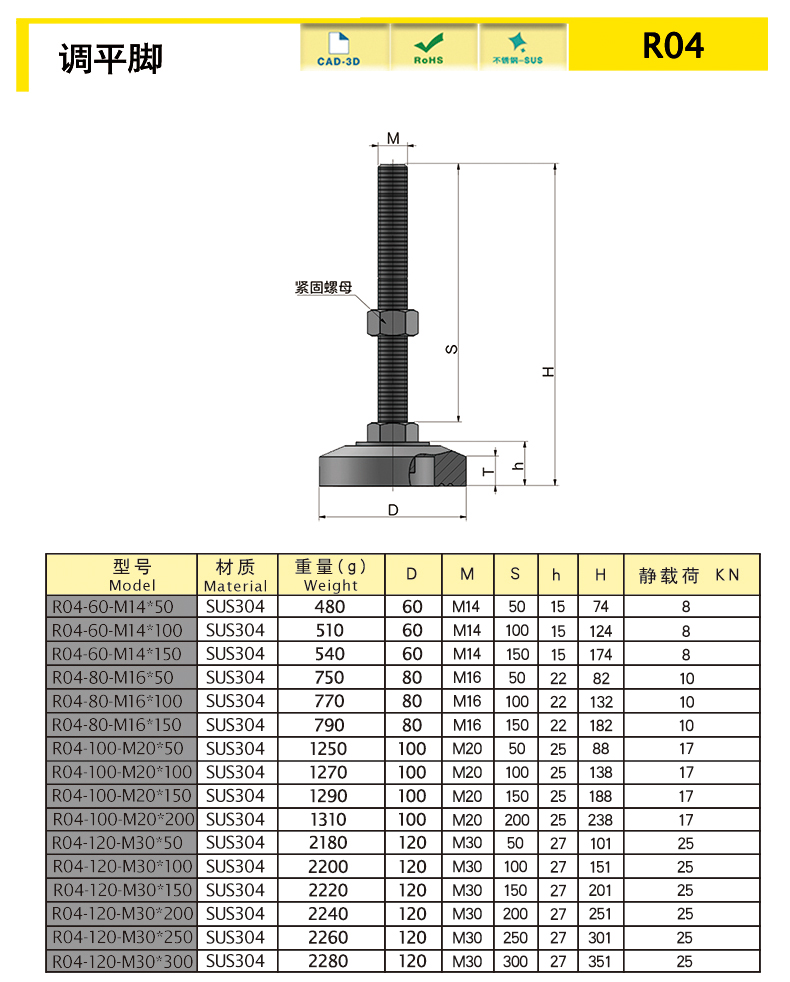 | R04-80-M16-50 | SUS304 | 80 | M16 | 50 | 82 | 22 | 1 | 10 | 下載 | ||||