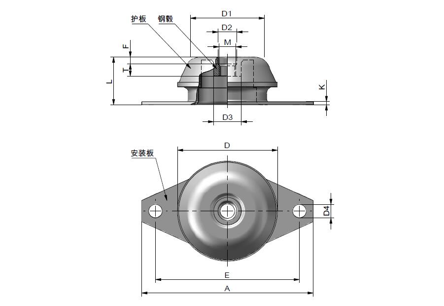 內部天然橡膠與金屬件相膠合,減震效果更好。