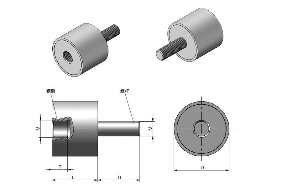 | 型號 | 材質 ![]() | 重量(g) | 直徑D ![]() | 長度L ![]() | 高度H ![]() | T ![]() | M ![]() | 最佳壓縮量(mm) ![]() |
