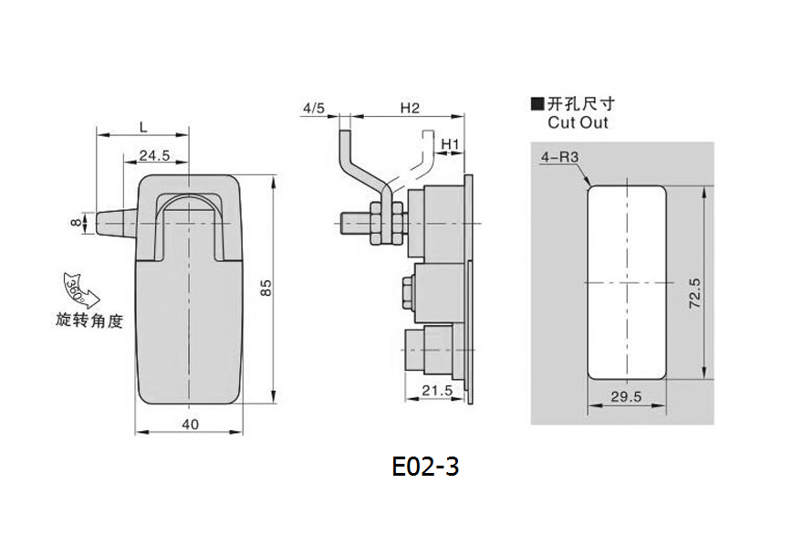 備注:壓縮式門鎖,壓縮量為3mm